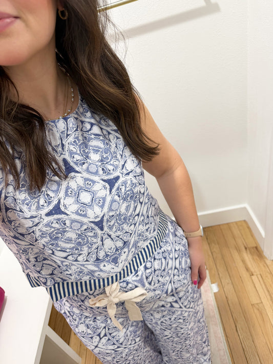 blue/white printed pant set