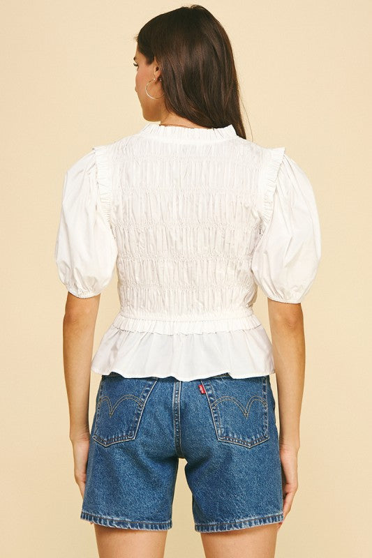 white shirring blouse