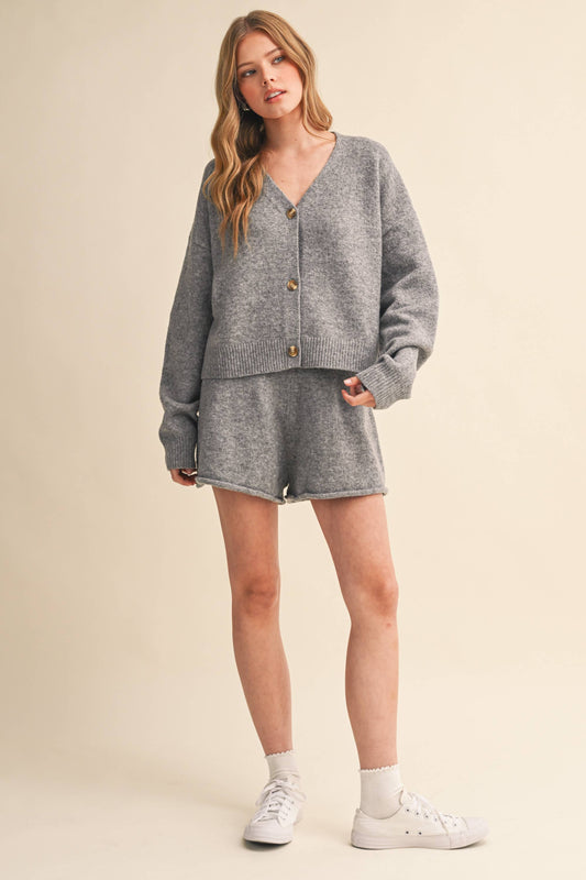 SWEATER CARDIGAN AND SHORTS SET (two colors)