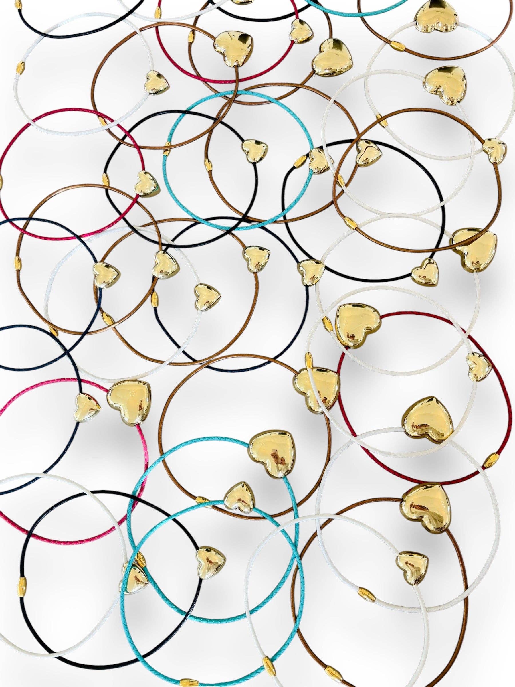 Back with our signature puffy heart but this time it is featured on a genuine leather cord. Sits just below the collar bone.