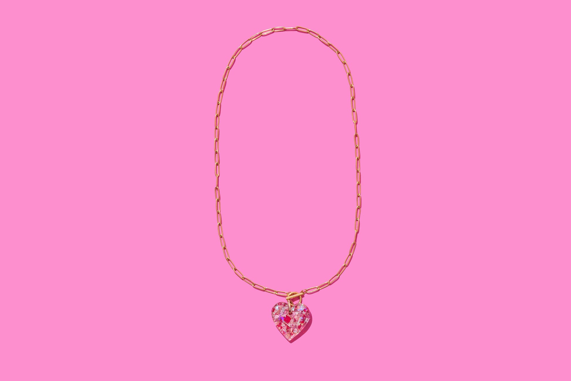 Paperclip Chain Necklace - Heart Pendant - Pink Confetti